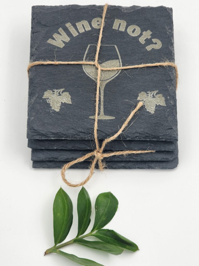 Wine Not? Laser-Engraved Slate Coaster Set (4-Pack) | Wine Lover Gift | Beauritual