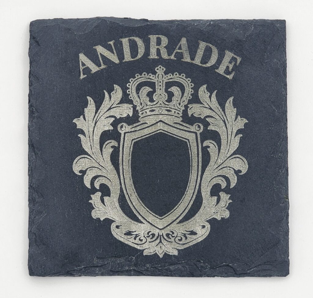 Personalized Slate Coaster with Custom Name – Laser-Engraved Natural Stone, Optional Holder (4-Pack)